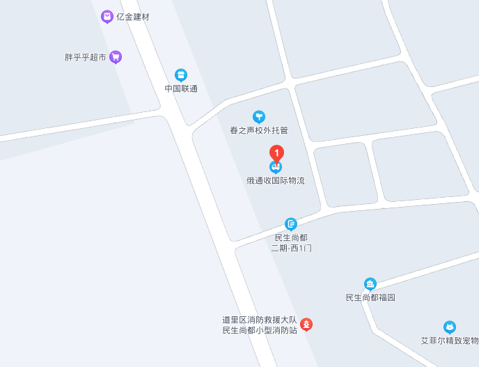 哈爾濱市道裏區群力四方台大道民生尚都二期(福園)小區門市-38-3俄通收國際物流有限公司